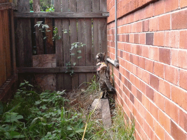 慌てて降りようとして 紐が塀に引っ掛かり、