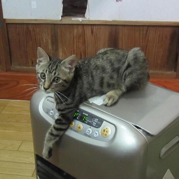 ファンヒーターの上がお気に入り!