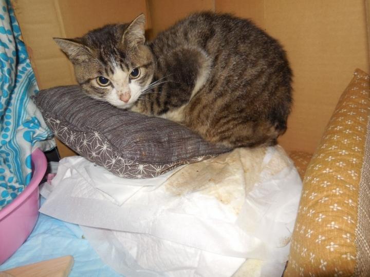 そして昨日は湯たんぽの上にシートで寝てもらいました