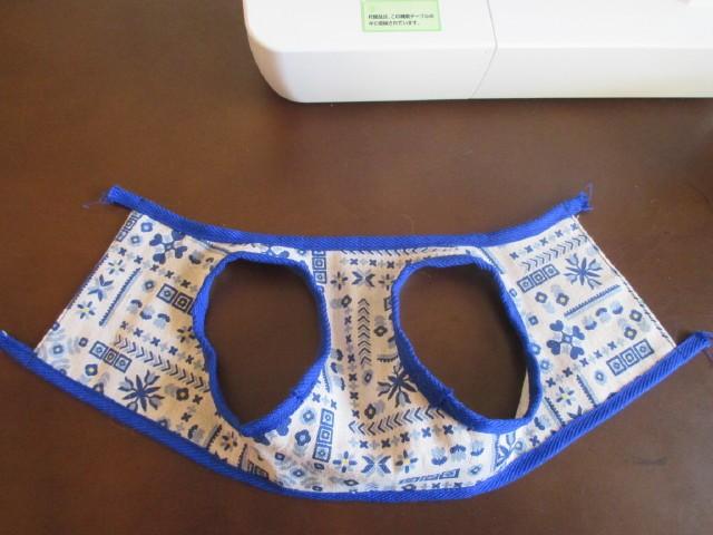 5)テープを襟、裾、袖の周囲に付けて行きます。
