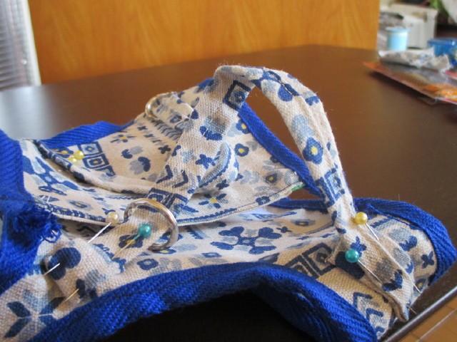 7)後ろ身頃でクロスするイメージで付けていきますが、カンを通すのを忘れずに!
