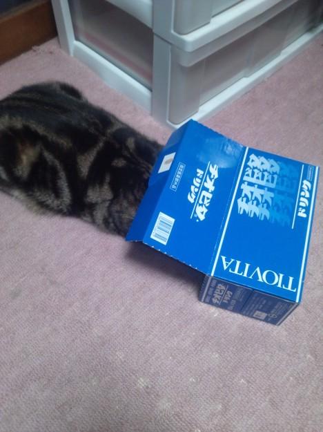 うっかり置きっぱなしにしていた箱に顔を突っ込むレオ(笑)