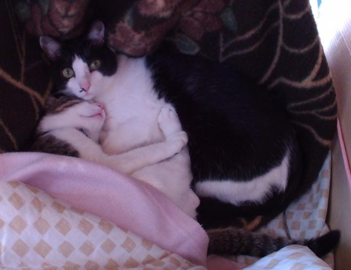 七七保が、えらいハチ君に甘えてるわ…とお母ちゃんが言う。