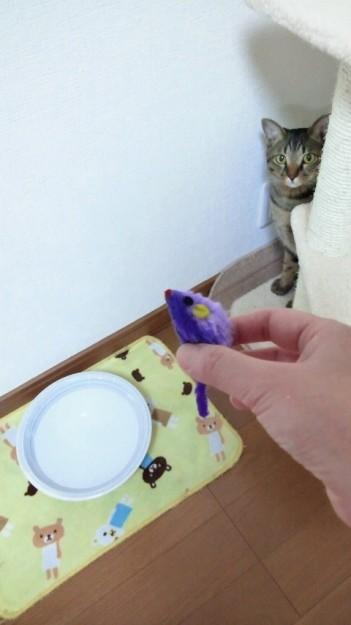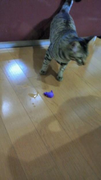 「ネズミのおもちゃを、水飲み鉢に落として、溺れてるネズミをレスキューする」遊びです…