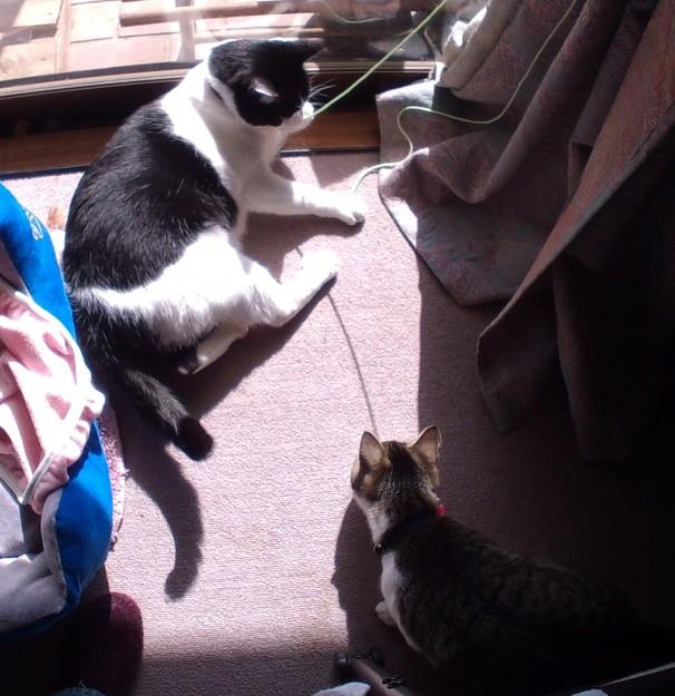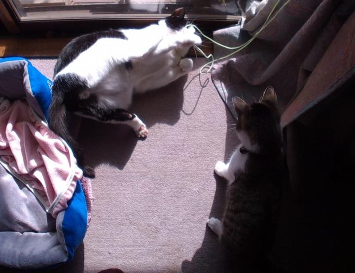 こちらも、外は風か強くて寒いですが、ペットベッドの置いてある南側は、少しお日さまが入りました。