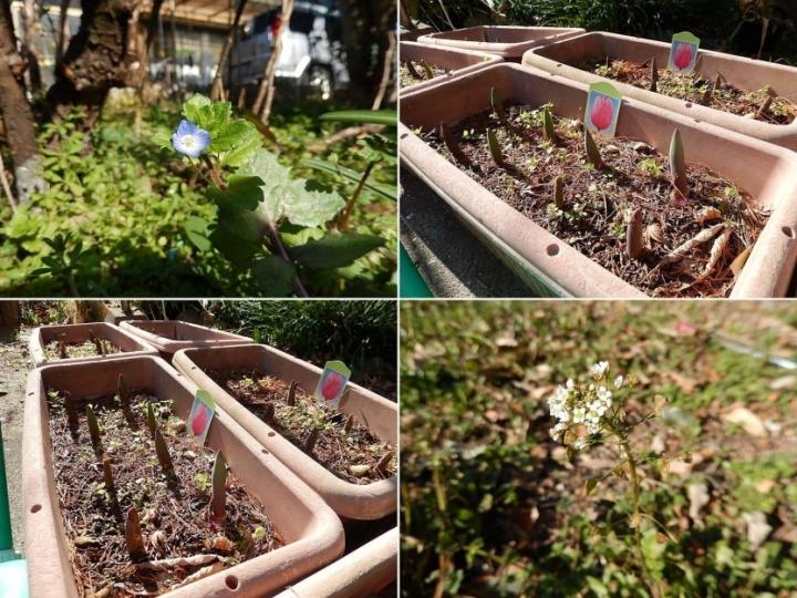 私が植えたチューリップはまだだね。