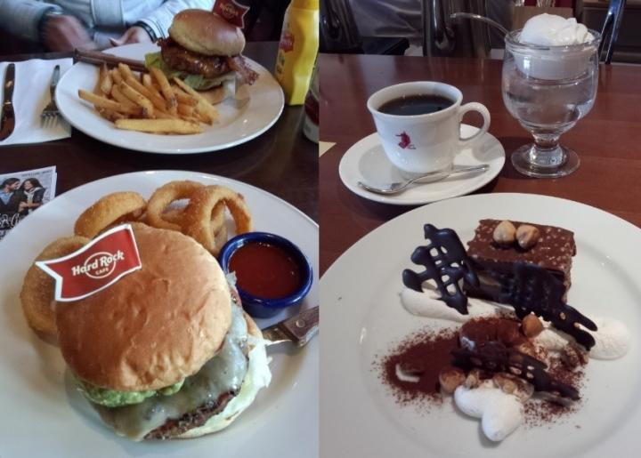 ドーム横のハードロックカフェに入り、ハンバーガーを食す二人。