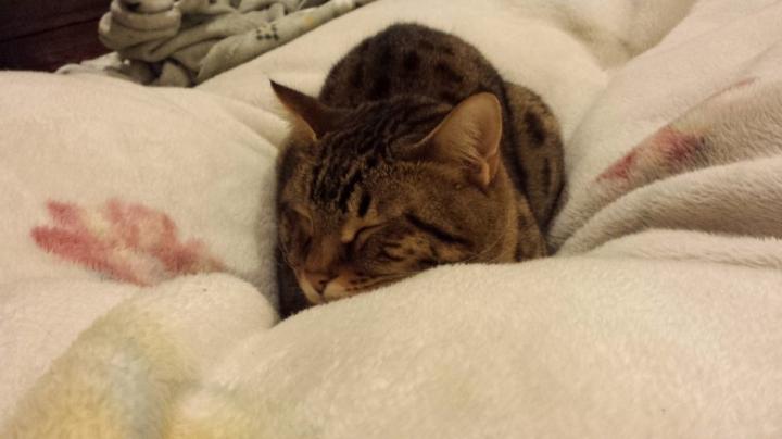 夜中にはワタシたちの布団の上に移動してくるんだけど、自立心てやつかしら(?_?)?