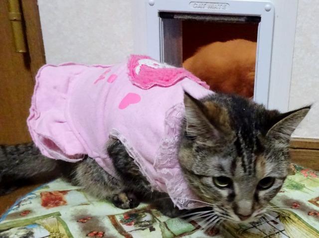1階にいると、ミニーも男の子も反応しちゃうので、お洋服を着せてガード(>_<)