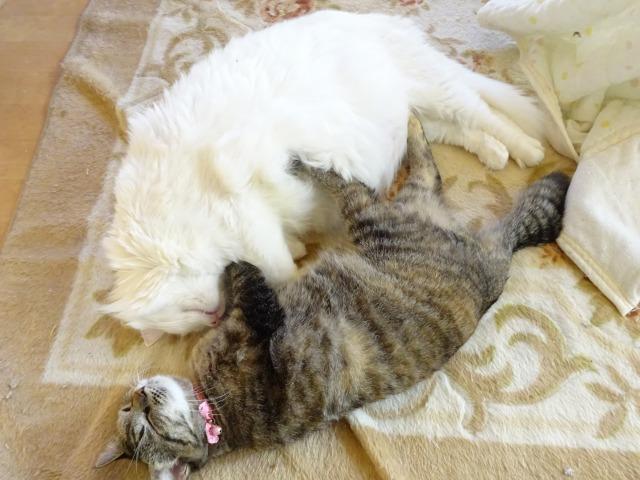 小さい猫の面倒をみてくれて優しい猫さんに育ってくれました。