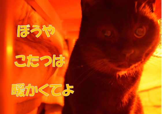 くろちゃんは、こたつの存在を知っていてスイッチを入れてコタツが暖かくなると、当然のように入っていきました。