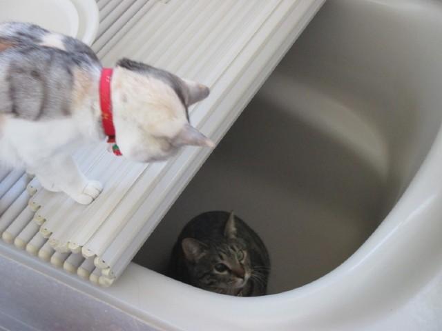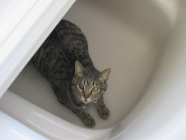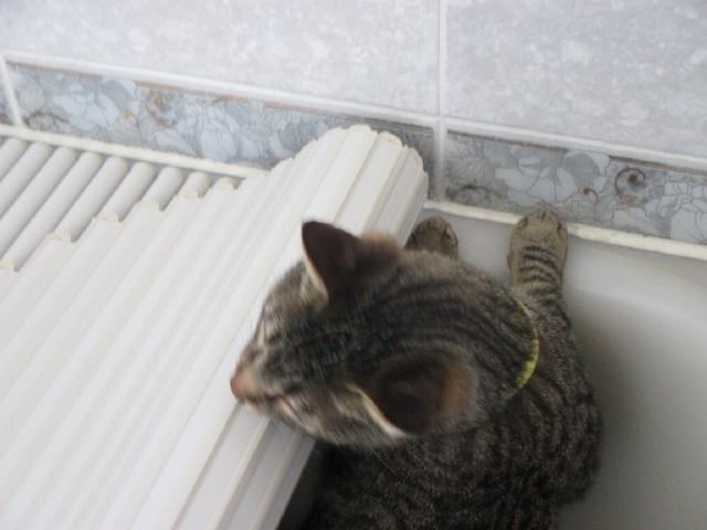 朝洗おうと猫トイレをお風呂場に持って行ったとき、戸をしっかり締めなかったようです。