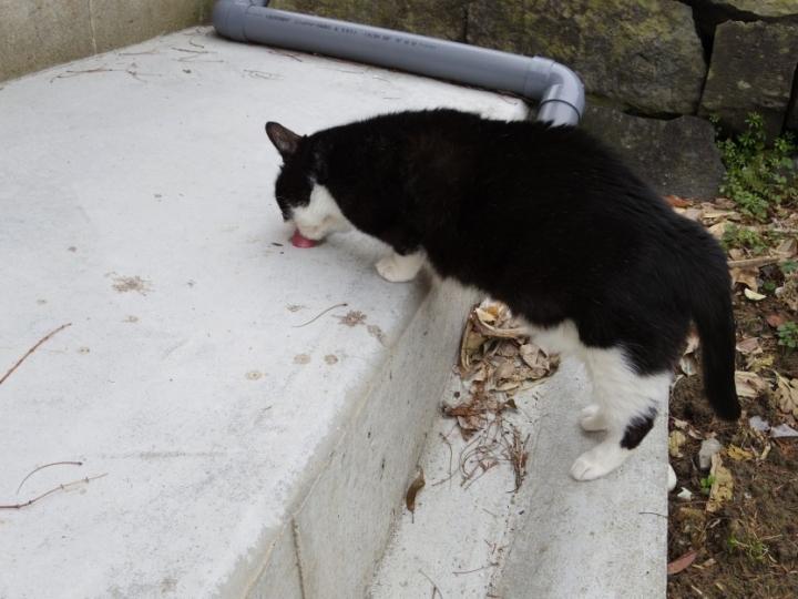 実は昨晩も玄関先のコンクリートを舐めていた。