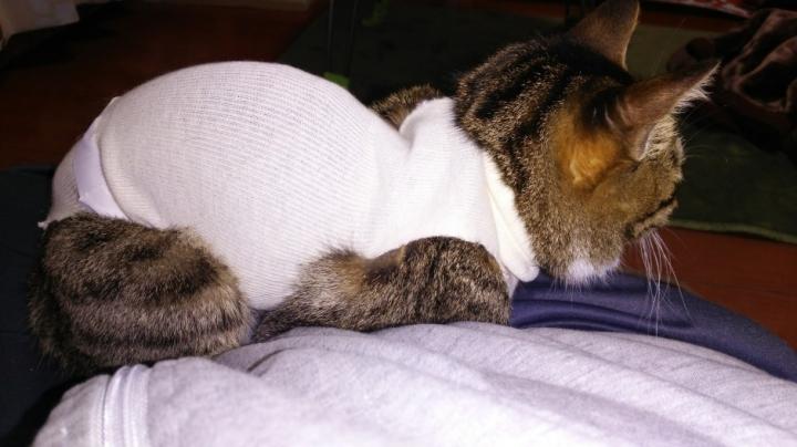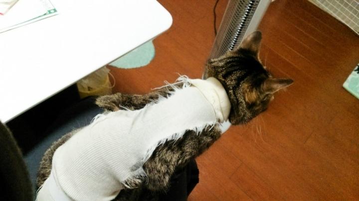 一昨日、後猫ちゃんのガーゼ服を脱がす日で、