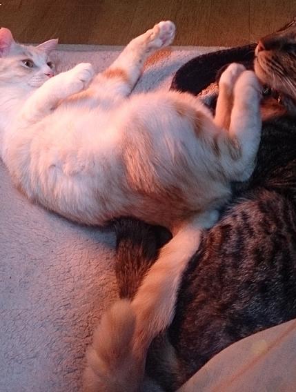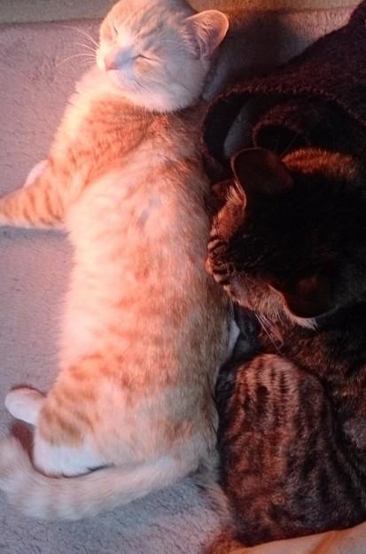 電気ストーブマジック??銀ちゃんとタマが一緒に寝てます~~♪♪