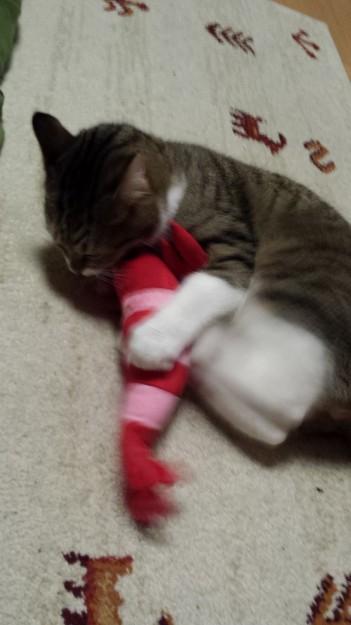 ドラくんはペロペロ、ニコちゃんはスリスリ、サクちゃんはケリケリ(笑)
