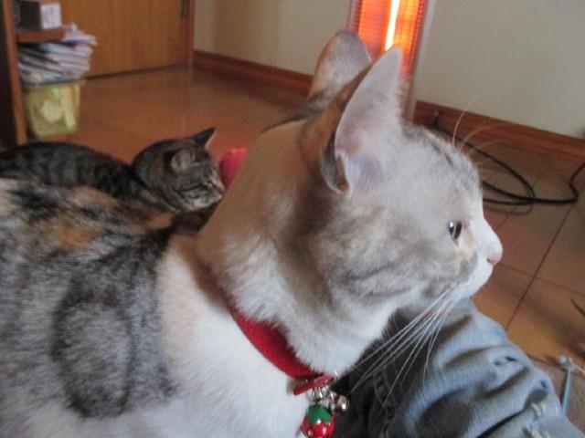多分「パパは遊びたいとき遊んでくれないし~、テレビの前から直ぐ降ろすし~、ゴロンしてって追いかけて来るんだもん。」(=^・^=)
