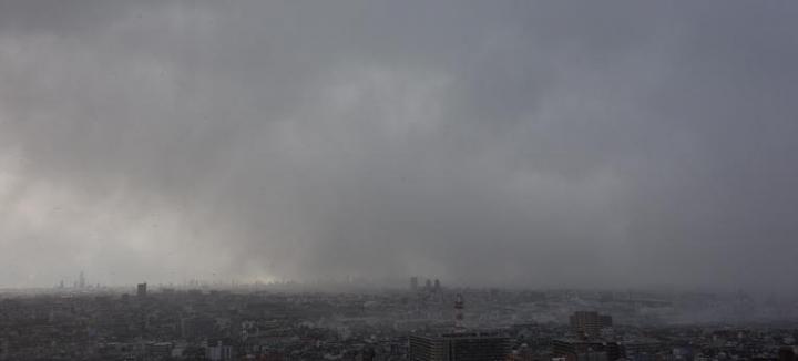 右下の地表に、白い冷気が広がってきています。