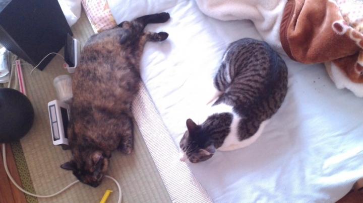 この2匹が珍しく、仲良く寝転んでいました。