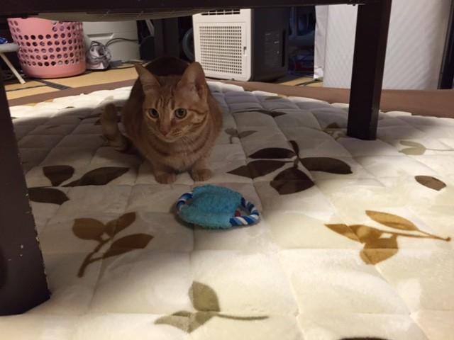 にゃんずが遊んでいると羨ましそうにしつつも寝ているのが忍びなく、休みだし先にトイレをさせ、ジュンも一緒に遊びます。