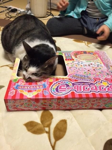 そのおもちゃはニャに?とばかりにななさん、気になってます。