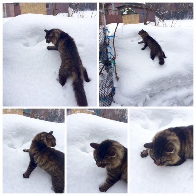 新しい雪なのでズボズボ沈んでしまいながらも