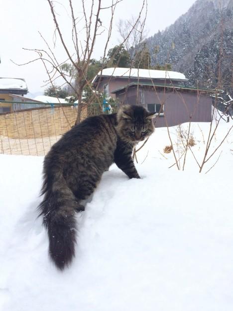 私が玄関前の雪山に虎太郎をポイ!っと。