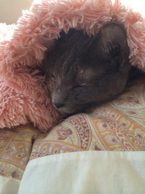 いない!と思うとお布団にくるまっています