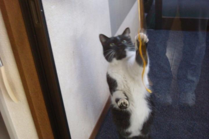 疑惑のままカメラを向けると、カオナシのために置いていた百均のまたたび爪とぎに夢中に・・・