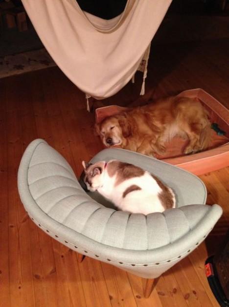 2匹が超接近して座布団の上で寝ていた!残された者同士、寂しさを紛らせていたのか!