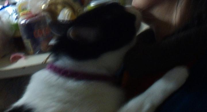 あごとほっぺたを、せわしなく舐めに来るハチ君。