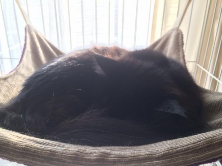 獅子丸殿のお気に入りはケージの最上段になるニャンモック。