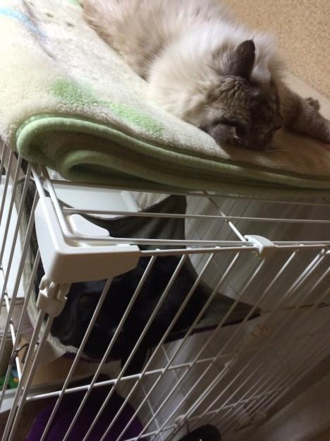 姫はキャットウォークにけっこう行くようになったので、ケージの上にいることが多くなりました。