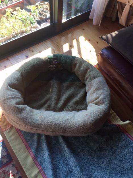 先日まで来ていたセーターは、あえて洗わず、飼い主とギンとリンの匂いを残したので、すぐに気に入ってくれました。