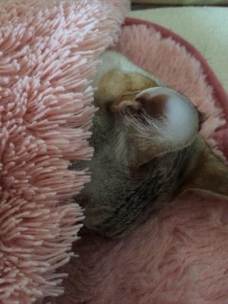 顔だけをだします→横向きになります→寝ます→可愛いです♪