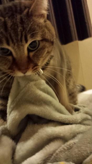 こうやって少しだけ自立(夜中には人間の上にやってくる)。