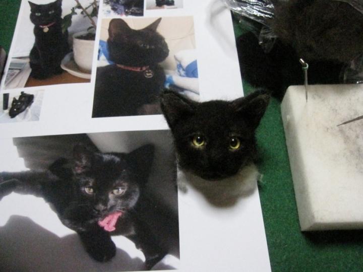 製作中のキキちゃん、黒猫はおニャン形でも写真を撮るのがむずかしい。