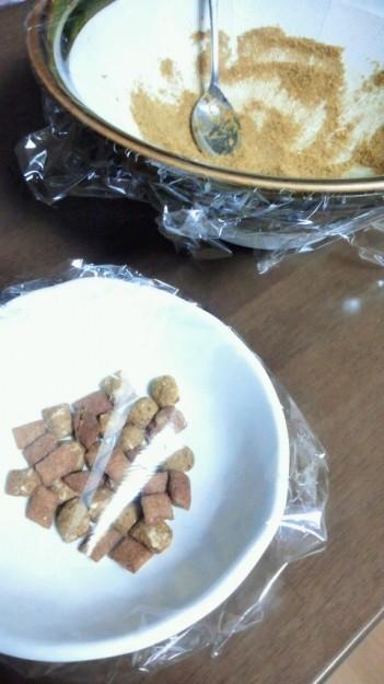 その方は、ドライフードの中央に穴を掘って、その中に薬をつめて炊いてある米や玄米で薬ごと穴を埋めるという方法でした。