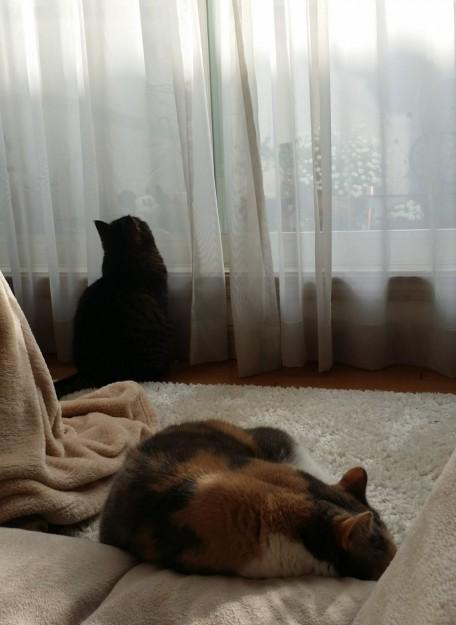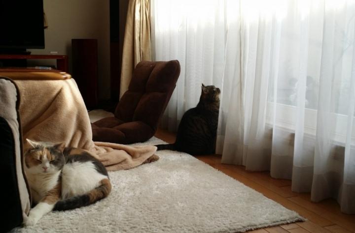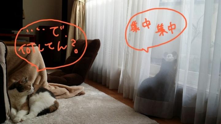 しばらくカーテンからでてこず