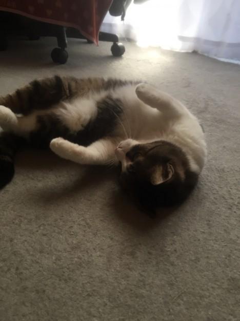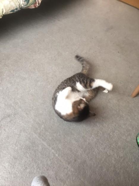 さっき起きてきて、まず右へ左へごろんごろん。