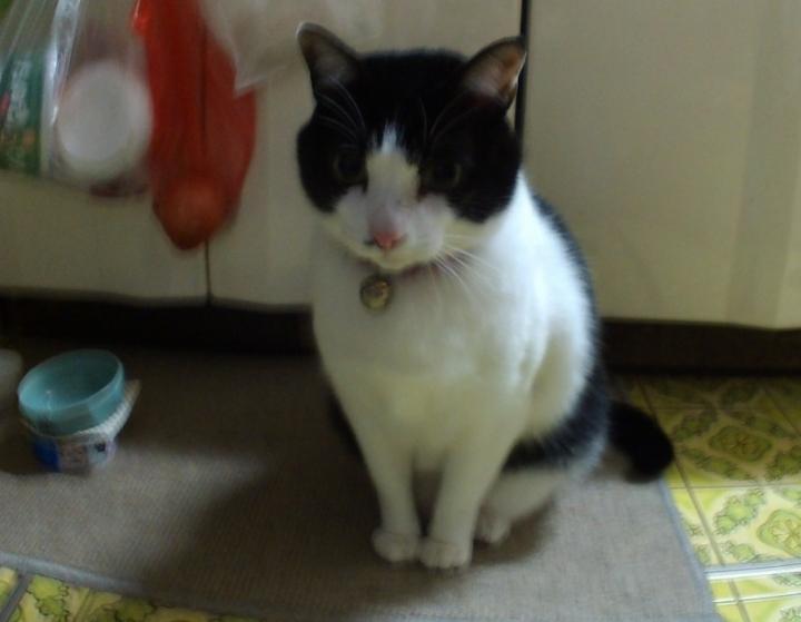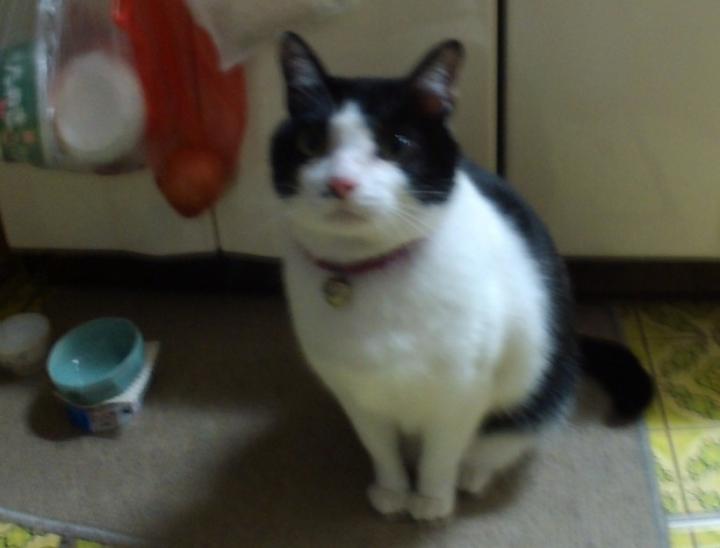 昼寝から起き出して、そぉ~っと台所へ行って、黙って待ってるハチ君。