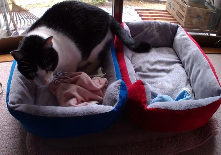 ハチ君…。ベッドの格好が…。