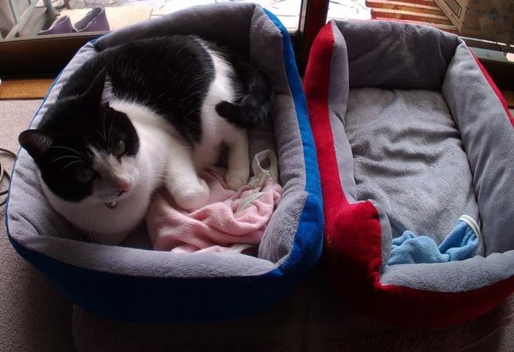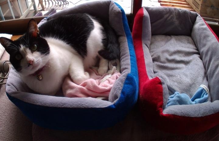 「ん?ニャんや?…傾いてるて?ええねん、これぐらい。ほな、寝るわ。」