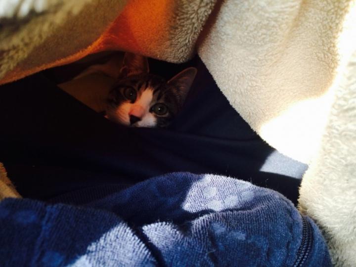 ソファーに横になってたら、入れて〜と可愛いお手てで毛布をカリカリ。