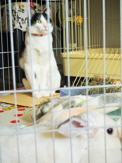 いつものようにウサギスペースの掃除を邪魔しに来た・・・