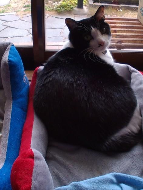 なので、今日も、明るいサッシ戸のそばの、ペットベットに入るハチ君。