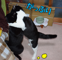 くろちゃんは、グイグイ猫頭突きで押し込んで行き、うっちゃんは劣勢。