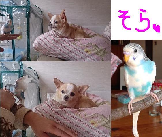 空が近付いて羽ばたくと、プゥはちょっとビビッてます~~(笑)