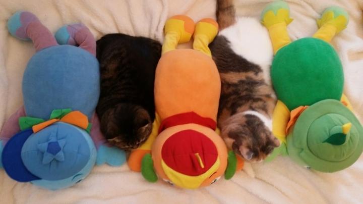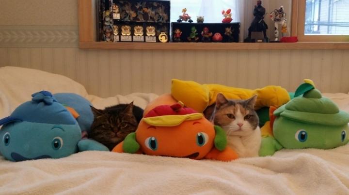 せっかく二匹で気持ちよく寝てたのにねぇ|ω・*)