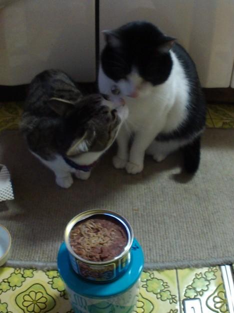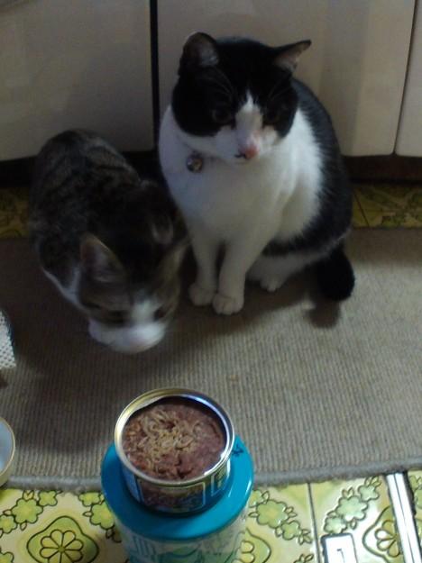 缶詰を開けて…。